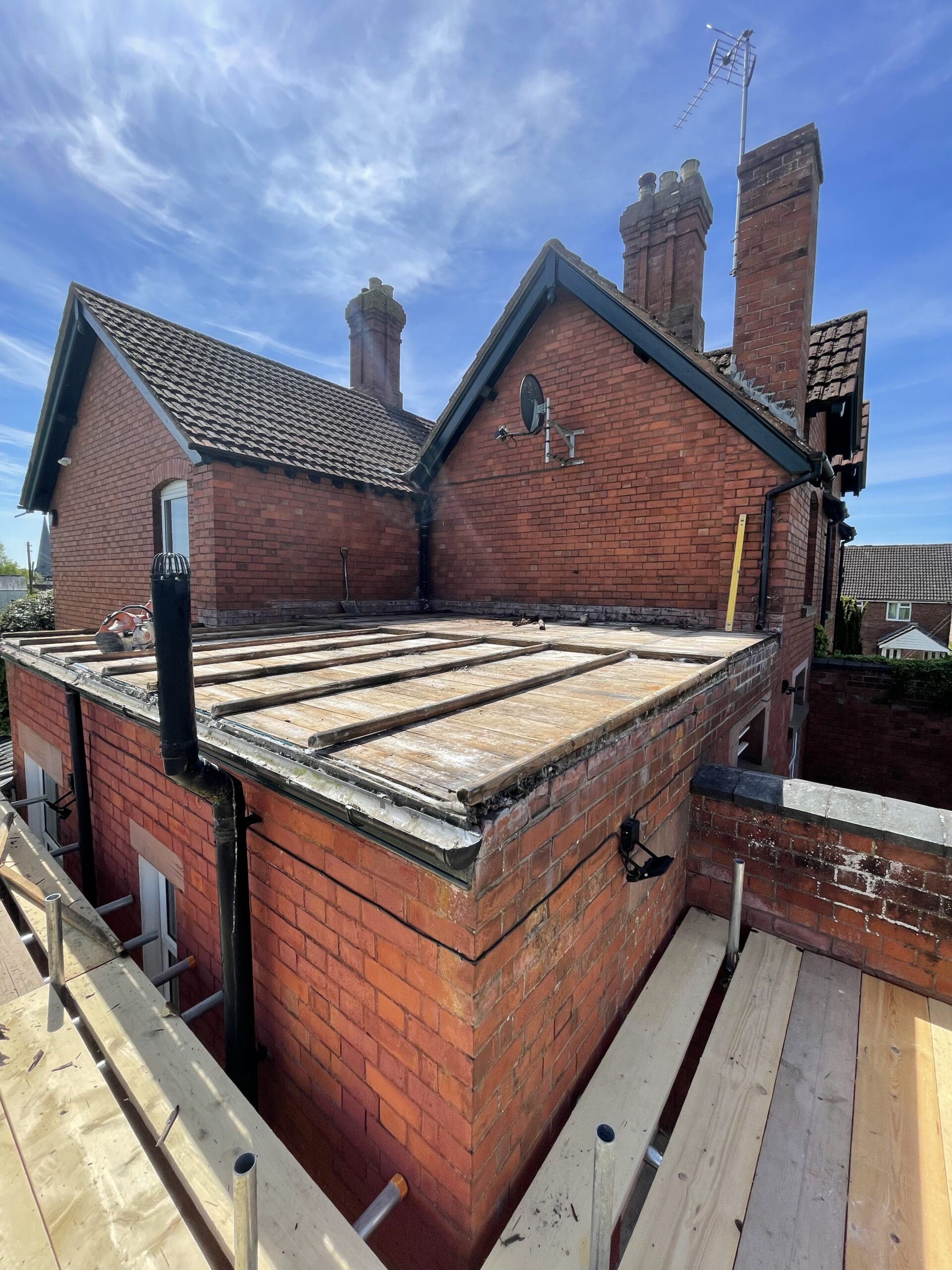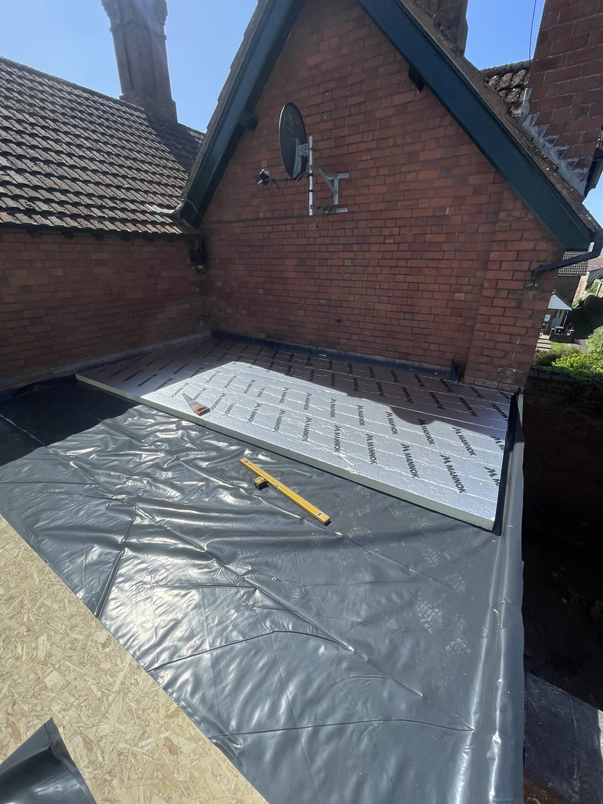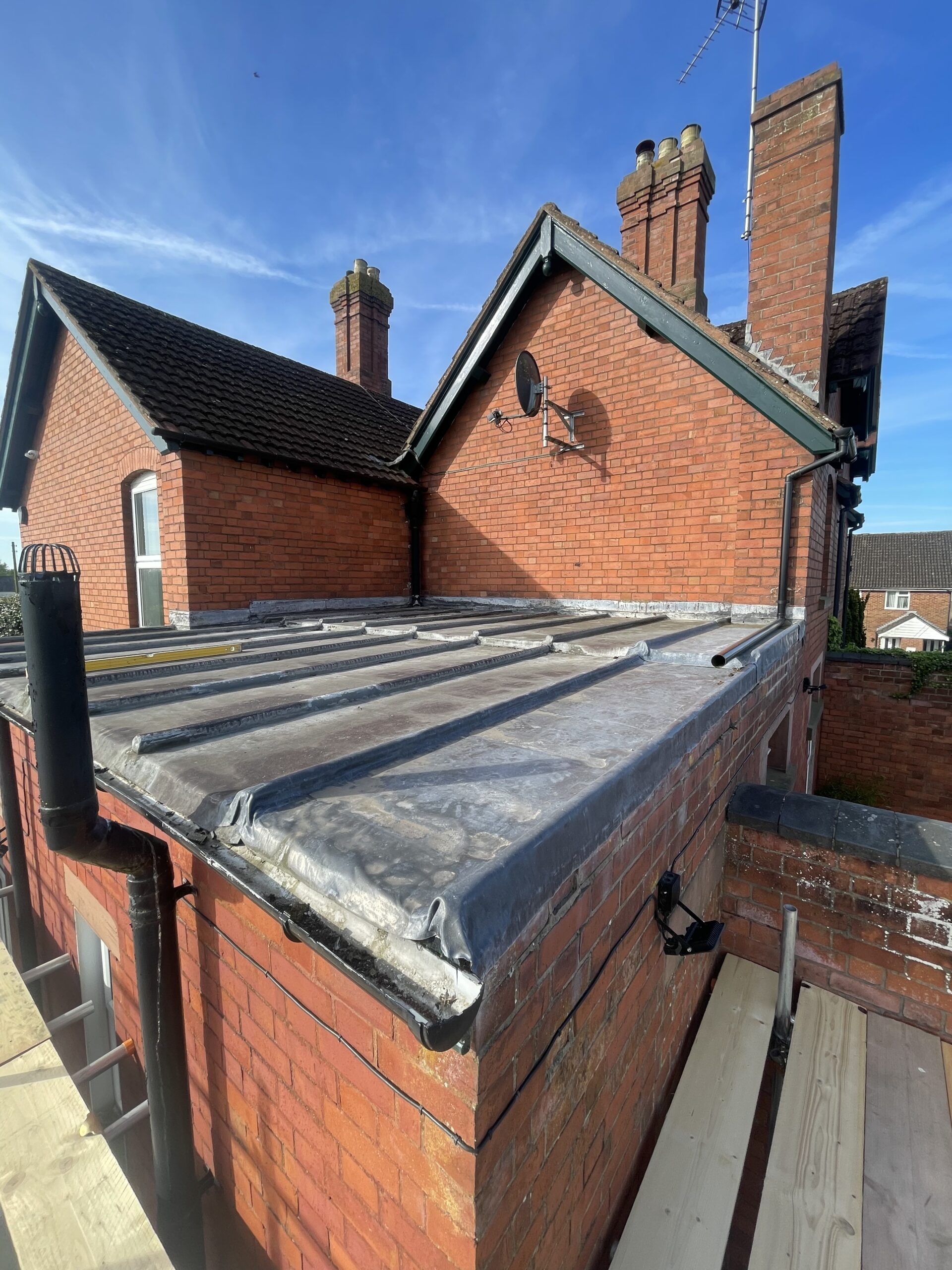 Existing lead roof had served its purpose over the last 80 years and was therefore in need of replacement. The client opted for a warm roof system to be installed over some recently converted bedrooms with a one piece EPDM system which was installed in one week.